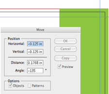 Remember any objects spanning to the edge of the artboard will require bleed, run these out an extra .125 per side. Using a temporary rectangle or margins at the overall bleed size can help align the objects.