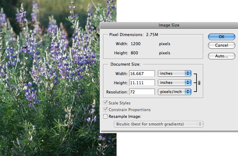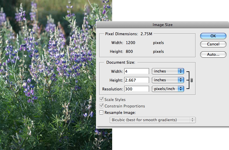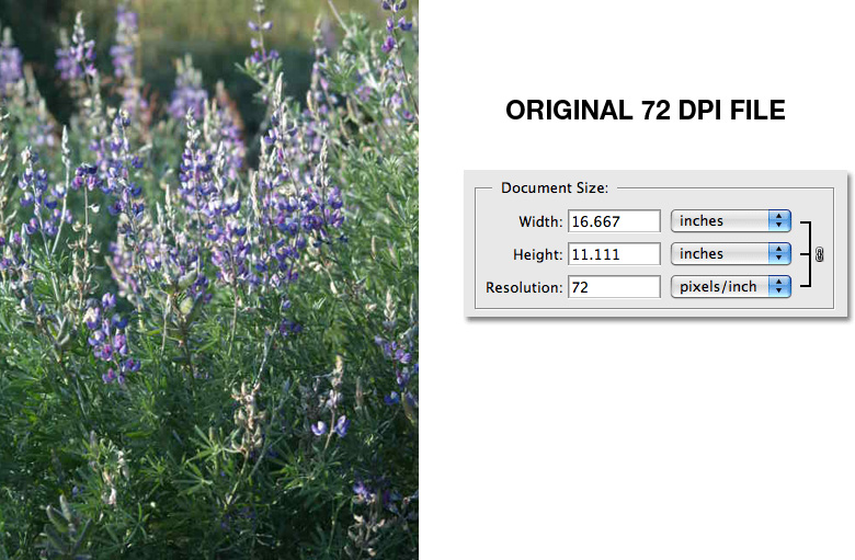 This image will now print much smaller than it would at a resolution of 72 pixels/inch, but what is lost in physical size, is changed for image quality. At 300 pixels/inch , a sharp, detailed, print quality image results.